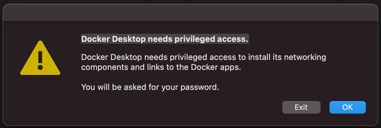 Docker Desktop needs privileged access.