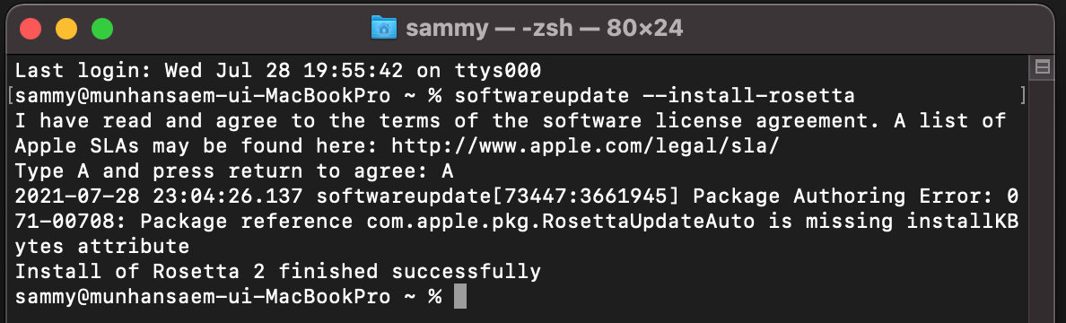 $ softwareupdate --install-rosetta