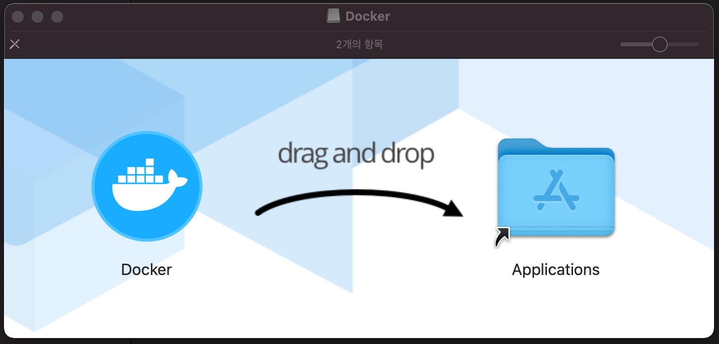 다운로드가 완료된 dmg파일을 열고 기분좋게 drag and drop을 합니다.