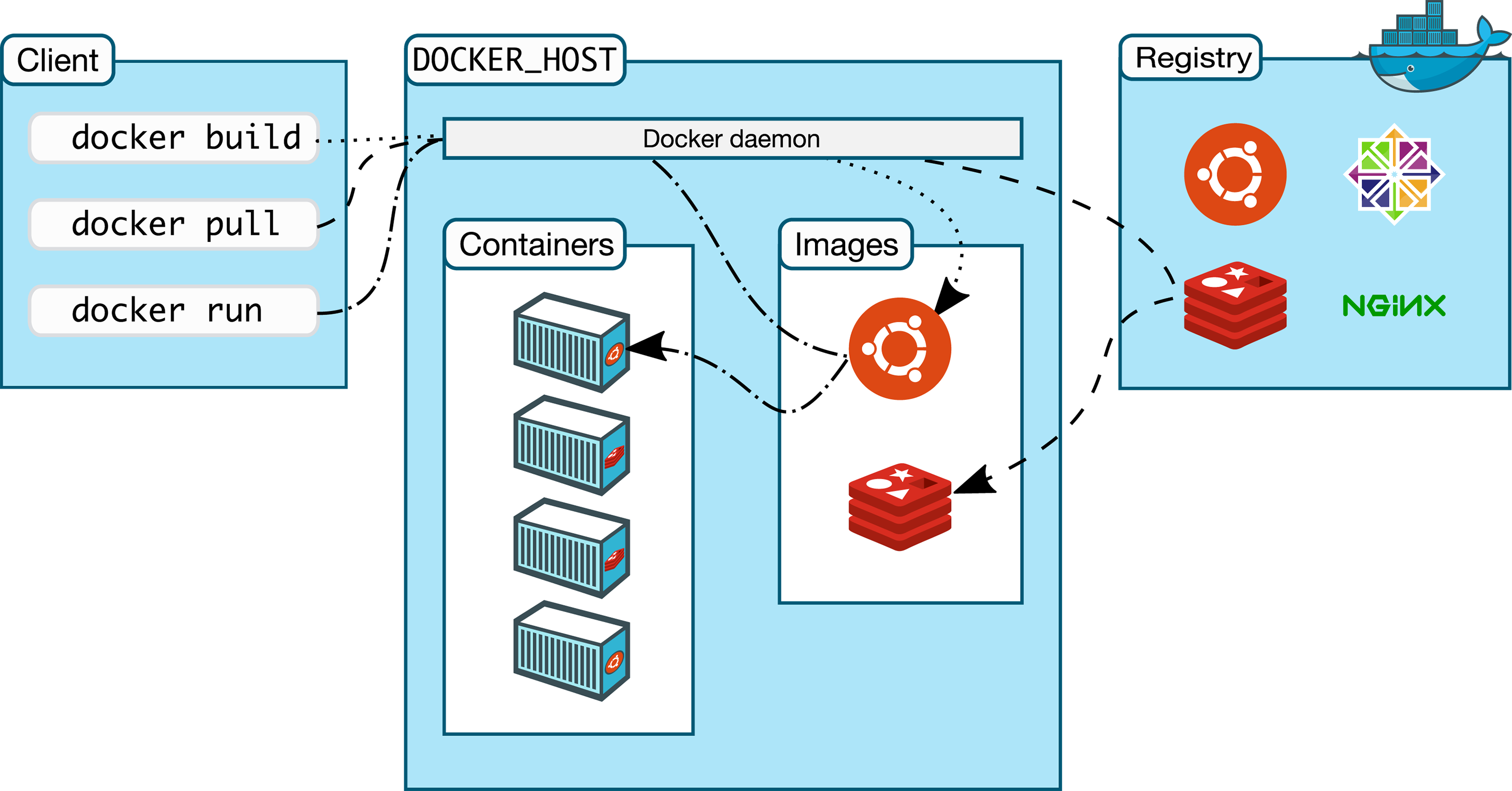 Server : Dockered라는 Docker daemon을 통해 도커 이미지를 만들고 관리할 수 있습니다.