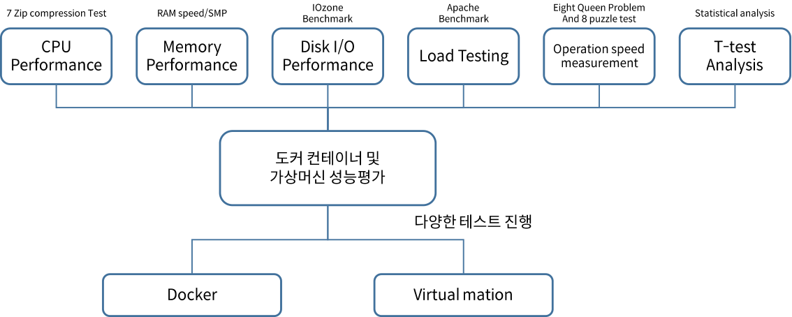 성능 평가는 CPU, 메모리 처리량, 디스크 I/O, 부하 테스트 및 작업 속도 등으로 측정을 하였습니다.